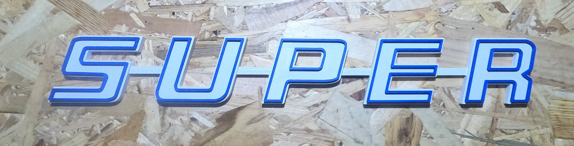 Letrero SUPER de Scania bicolor, apto para rejilla delantera